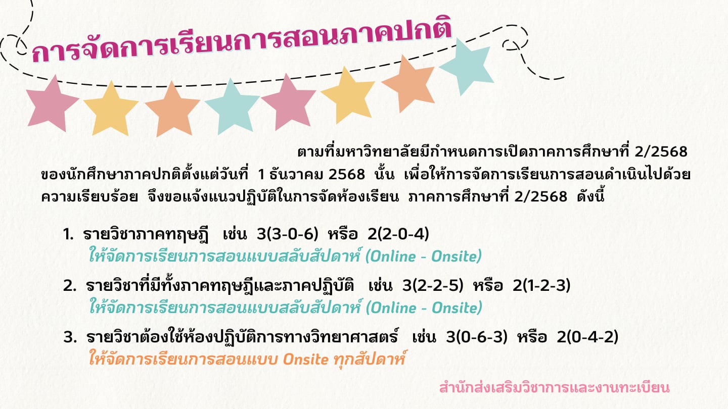 | หมายเหตุ | สำหรับการจัดการเรียนการสอนภาคปกติภาคการศึกษาที่ 2/2568 |